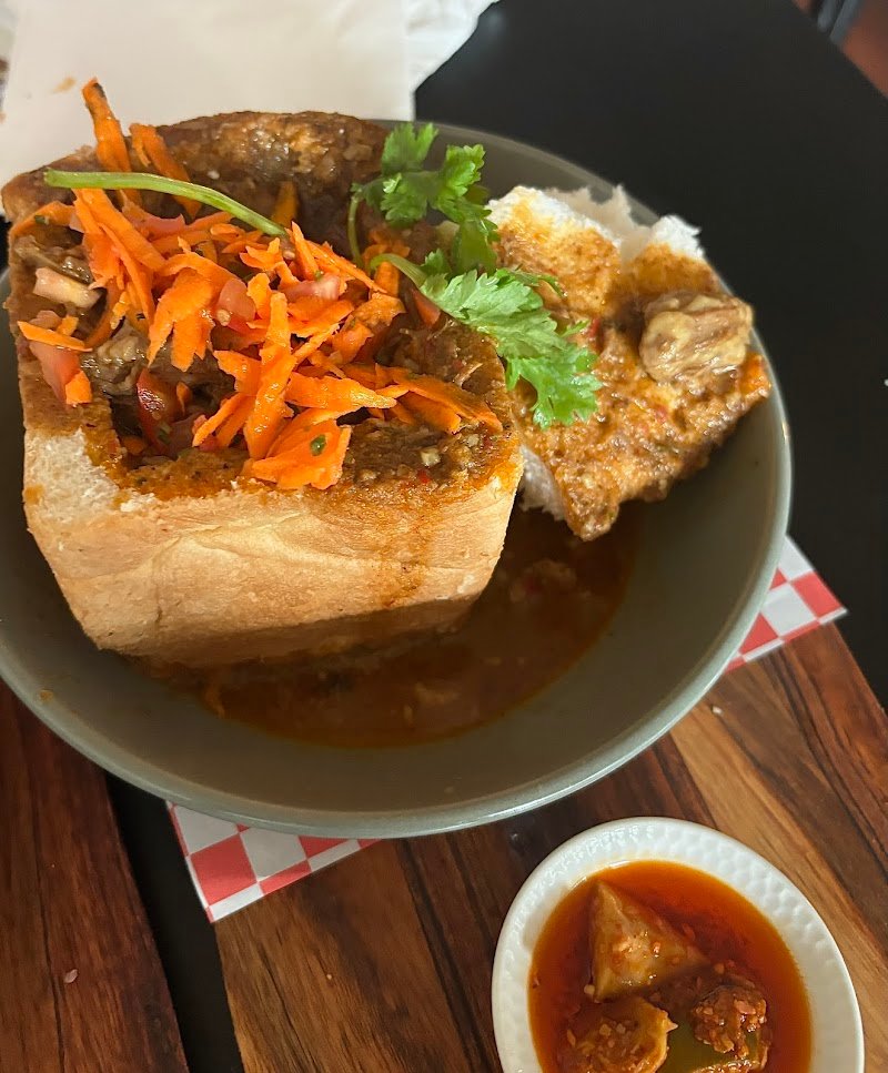 Was my first bunny chow and it didnโt disappoint! Big great chunks of lamb and spiced potatoes mixed in a loaf of bread! Perfect as-well as everything else we ordered! We were able to sit at Big Easy next door with a pint and have it delivered by the chef! Cheers weโll be back ๐๐