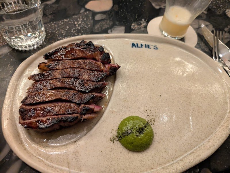 I absolutely love going to Alfieโs! Three times and counting now. The steak is solid but I really come here for the sides (the brussels sprouts are out of this world) and the ice cold martinis. The burnt honey beef fat & salted chocolate crumble gelato popsicle is also a favourite. Top tip: happy hour (4-6pm) is a treat and amazing value for money (you can also get the popsicle off-menu during!). Service is friendly enough, pretty standard. The atmosphere is casual; a bit chic and vibey. I usually try to avoid going to places more than once as there is a smorgasbord of excellent food to try in Sydney, but Alfieโs is a special exception.