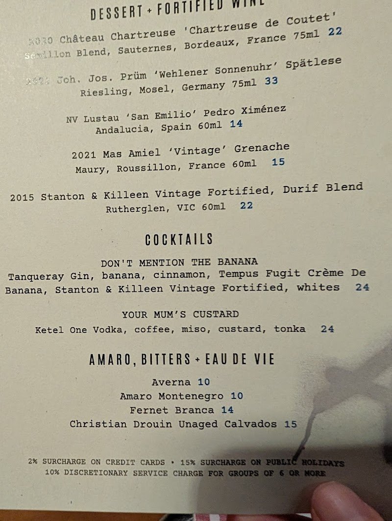 Spectacular restaurant. The place to go if you just want steak, with exceptional sides. The Brussels sprouts are a standout. The wine by the glass menu is better than it should be. Desserts was great, as was the desert wine. Very interesting wines on the list. Full of flavour. The steak itself is very good quality, and a bargain for the quality your getting. You could come here and spend $50 and get a fantastic steak - in and out fast, perfect for a lunch break or pre theatre, or use the steak as a base to explore the frills of a steak restaurant and spend some big bucks. It's also just nice to see a new concept roll out.