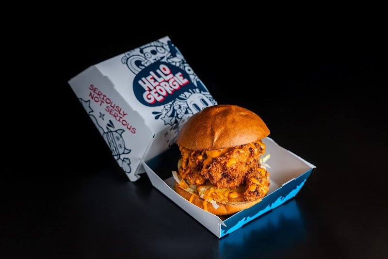 We had lunch at Hello Georgie today. Best Chicken Burger I have ever had in my life. ๐ Lots of chicken, and 2 rings of pineapple and yummy sauce and lettuce, I had to pull it apart to eat it ๐ My hubby had piggy smalls which consisted of a slice of pork belly, some crackle, pickles carrot and a delicious sauce. Which he also loved. Then just to try them we had onion rings and they were delicious and so crispy, as well as chicken loaded fries. You definitely get your money's worth. The staff were lovely and friendly. Loved the music was great, absolutely wonderful atmosphere. We will be back. Well done to everyone at Hello Georgie. 10/10