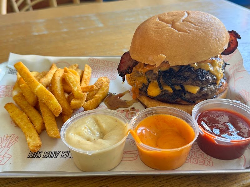 His Boy Elroy is the ultimate burger bar. The burgers are amazing, really next level with the creative flavours and combinations that are employed to make an overall indistinguishable food experience.The fries are well seasoned, but the beer, the beer is cold and delicious, always with new and interesting flavours the beer paddle is a must just to taste test the wide variety of options they have available. The best part though is the story behind the creator and more importantly the message that is shared through the important work of Bar Stool Brothers